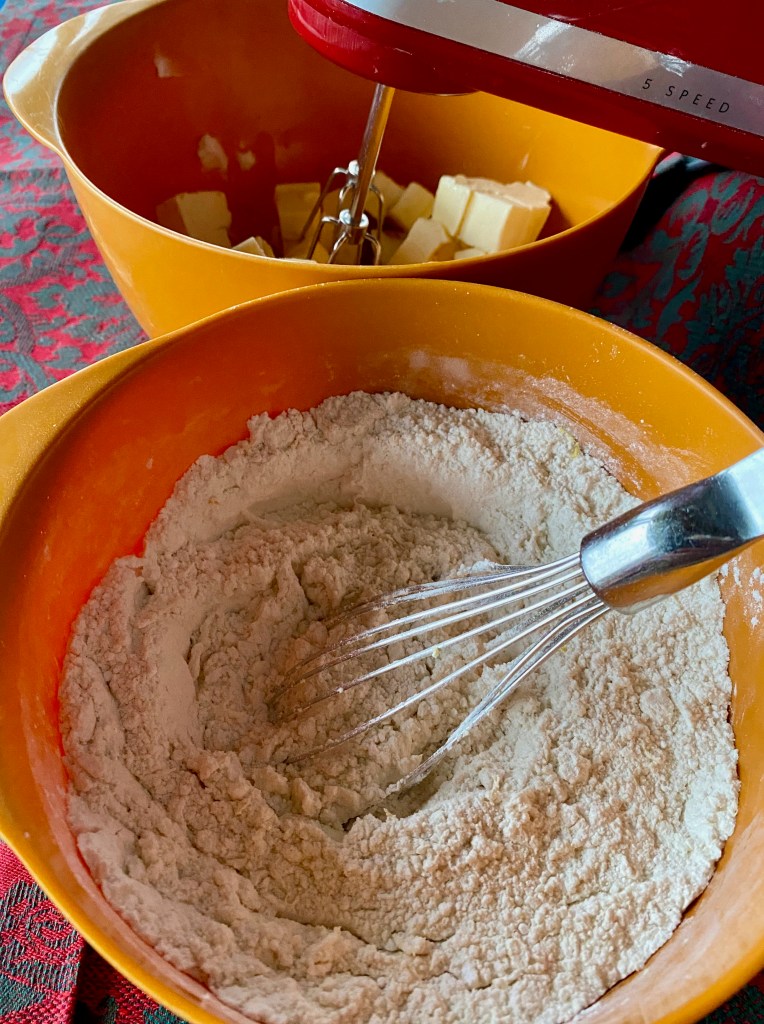 December 16, 2020.  Hookie Cookie Day is probably the best idea Mom and I ever came up with as parents- this, and putting money aside for your colleges- but Hookie Cookie Day was way more fun and a lot cheaper.  It started when Mom was a little, school girl and her mom, GM, was a teacher in a different school district.  Every once in a while, GM’s school had a Snow Day when Mom’s school didn’t. When this happened, GM, being an amazing mom, would let Mom stay home from school to bake cookies.  We decided to honor this tradition with Hookie Cookie Day- that one school day each holiday season when we would surprise you kids by letting you sleep in a bit, before we woke you up for a day of holiday baking instead of school! So today, I hereby declare it Hookie Cookie Day and give you two recipes from the family archives- a jam covered shortbread, which was one of your favorites that I would always make, followed by a very kid friendly recipe for dog biscuits that you two would always make!