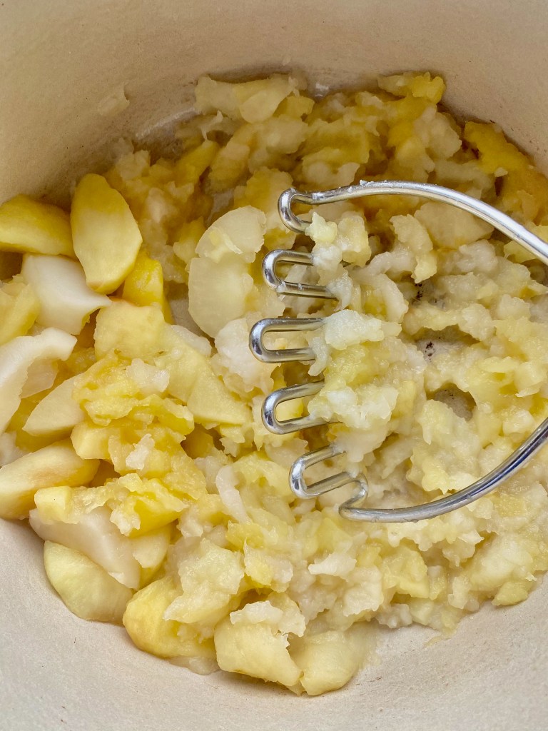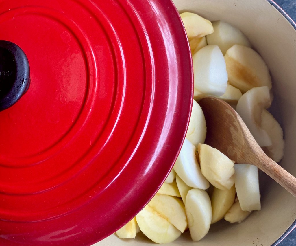 Even Easier Applesauce. A food mill is probably something you kids won’t have in your college kitchen, but it’s a great time saver to get one day. In this recipe, a food mill would give silky smooth sauce and save you the time of peeling the apples because as you use the food mill to puree the apples (using the disc insert with medium holes), the skins are left behind. Leaving the skins on while the apples cook also ups the nutrition and will create a lovely pink hue from certain apples. A food mill is great for very smooth mashed potatoes and removing seeds and skins when making fresh tomato sauce too!
