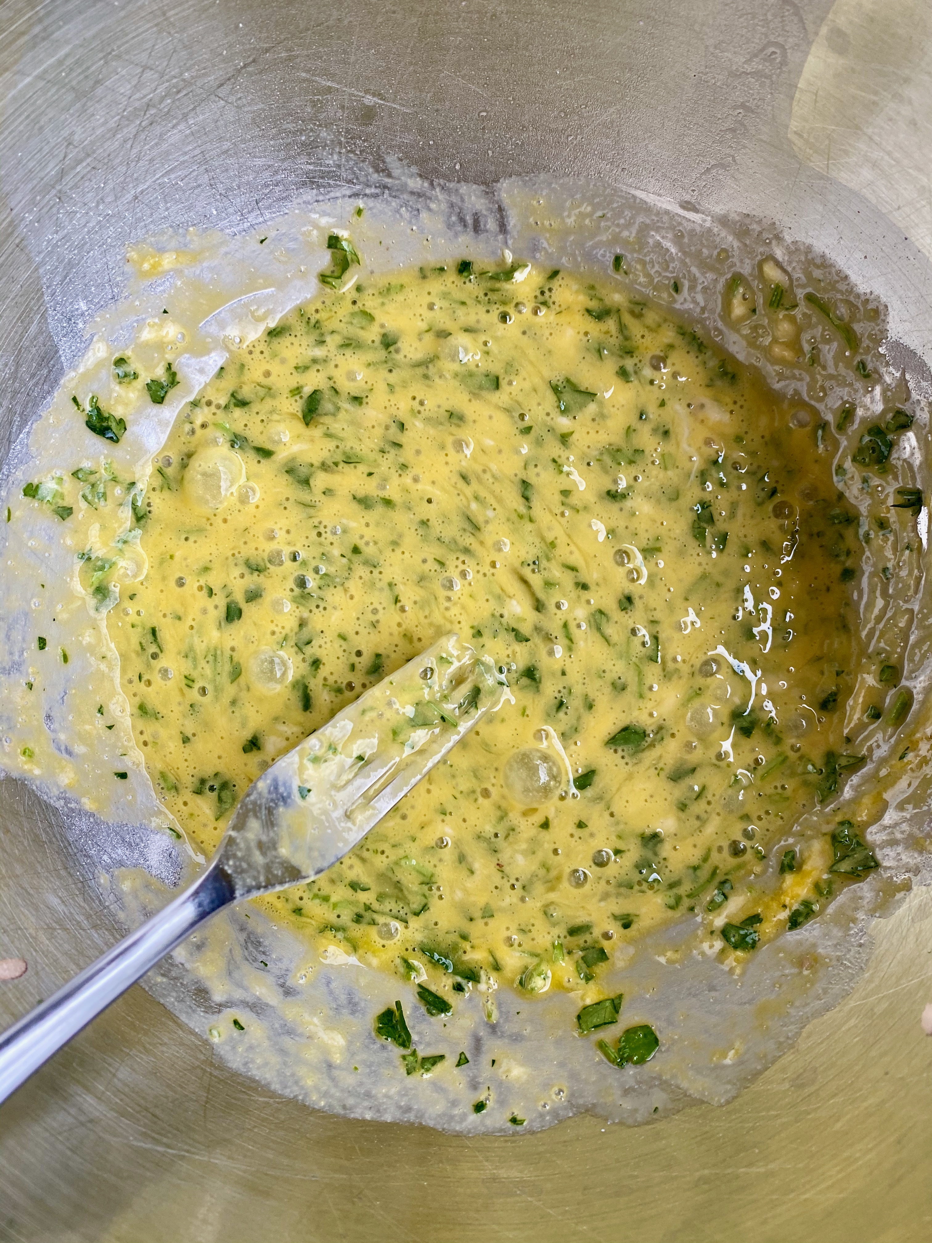 - 1 cup onions of your choice, grated or minced- l like a yellow onion- 3/4 cup and scallion-1/4 cup combo- you’ll have to mince scallions since they don’t grate so well