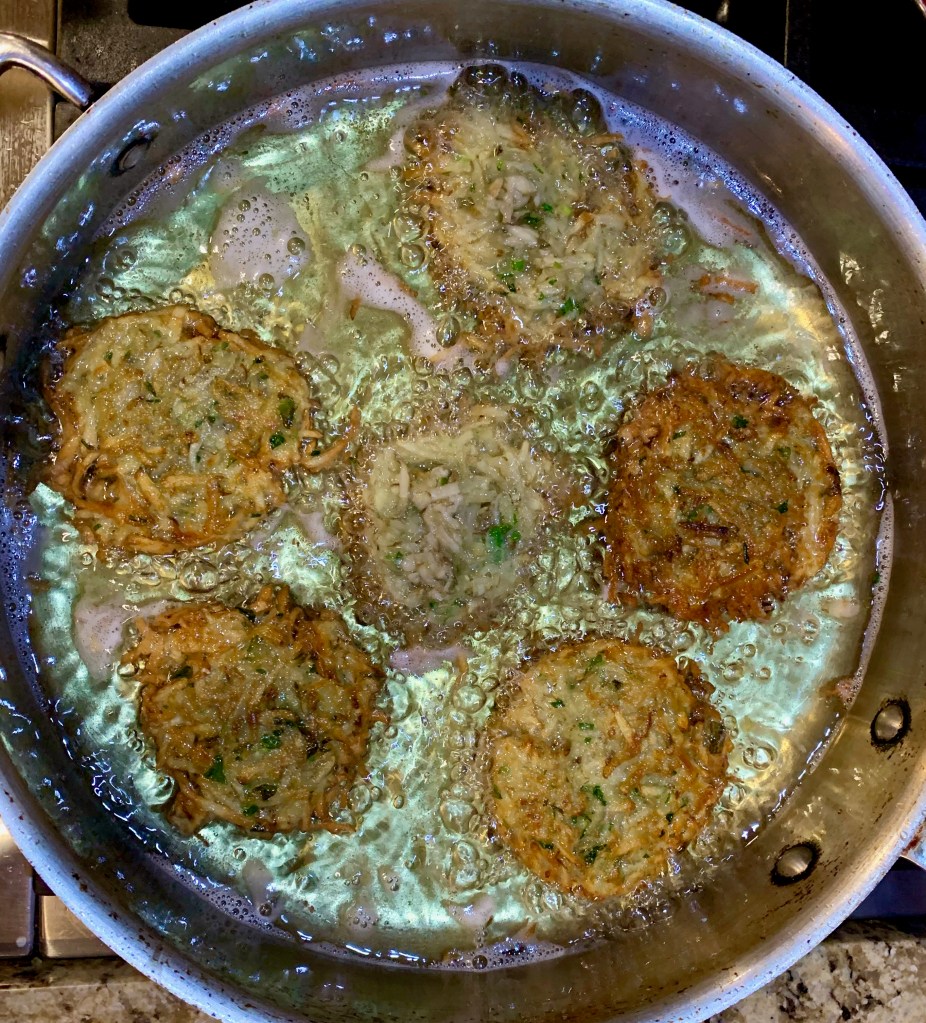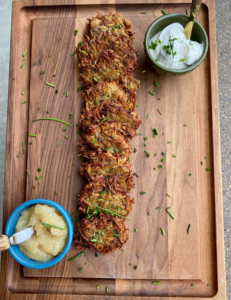 Keyword: potatoes, latkes, shallow frying, applesauce, celebrations