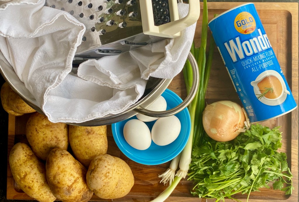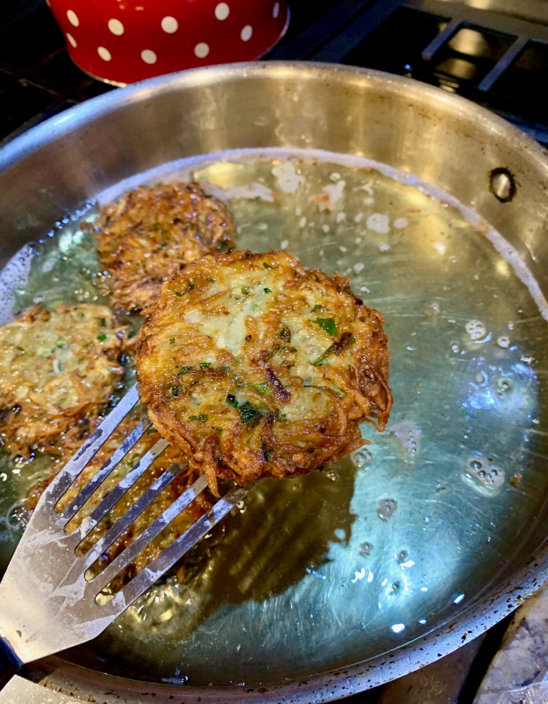 A Lesson About Latkes. One of my best friends is an accomplished latke maker and this year he was beside himself when his wife brought home frozen, shredded potatoes for their Hanukkah latkes instead of fresh potatoes. He had no trouble expressing his dismay to her, but having no choice but to use the frosted potatoes, he carried on. He dropped the frozen chards into a bowl and let a few minutes pass to take the chill off, as he prepped his other ingredients and preheated an air fryer- apparently, while the form of potato was a problem, it was OK to skimp on the traditional amount of oil that commemorates the miracle of the oil. He then tossed the half frozen potatoes with his egg slurry and hoped for the best. As it turns out, he tells me (but not his wife after he made such a fuss- smart man) they were the best latkes he’s ever made. I will for sure try frozen, shredded potatoes next time I make latkes because, if there as close to as good as he says (not sure I’m on board with air frying, but you kids might be), the amount of time you can save by not having to grate the potatoes and clean up the mess from said grating is a game changer!