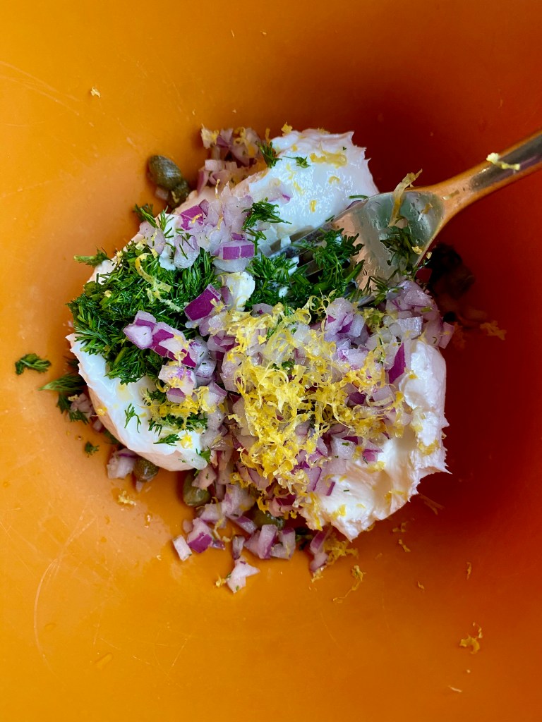 Speaking of the InstaRecipe! Here’s the Lox Schmear InstaRecipe! Use a medium bowl to mix 8 ounces cream cheese, 2-4 tablespoons of minced, fresh dill, 2 tablespoons minced capers, 2-4 tablespoons minced red onion, zest of a lemon and 1-2 teaspoons fresh lemon juice- you’re done! That was fast and fun, wasn’t it?!
