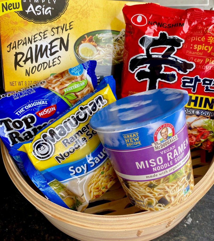 Use Your Noodle. There are three types of ramen noodles- fresh, dried and instant. To make your ramen more nutritious, avoid instant noodles, which most likely have about six times the fat of fresh or dried since most instant ramen is fried as part of its processing. Even better, use veggie, kelp, Shirataki, whole wheat, buck wheat or other more nutritious alternatives.