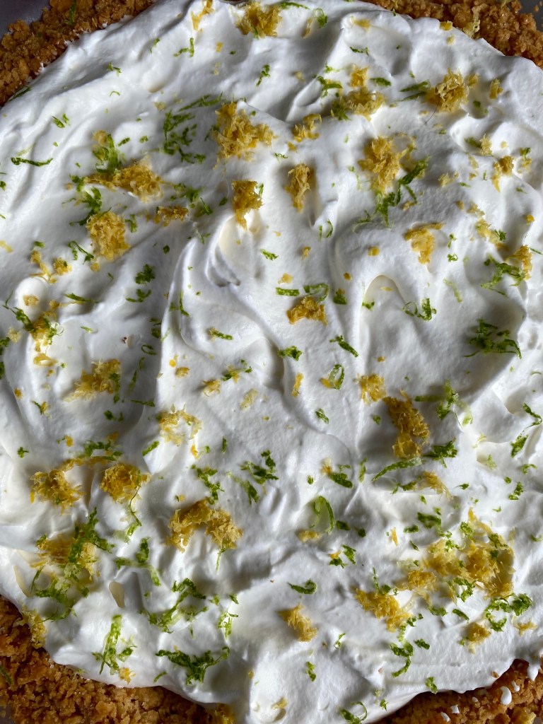Pick Your “Cracker”, Pick Your Citrus.  The crust can go in many directions, if you don’t appreciate the ingenuity of the Saltine Crust in the original recipe- use graham crackers, vanilla wafers, shortbread cookies, animal crackers or any cookie type crust you think works well with lemon.  As for the filling, there’s no reason you couldn’t swap out the lemon juice, for lime (think Key Lime Pie) or any other citrus juice, keeping in mind the sweetness of the juice, if you wanted to go in a different direction.