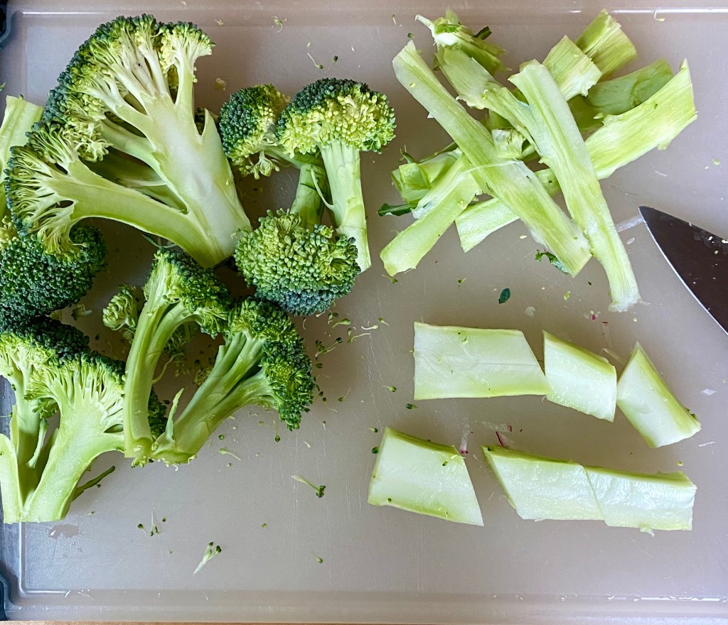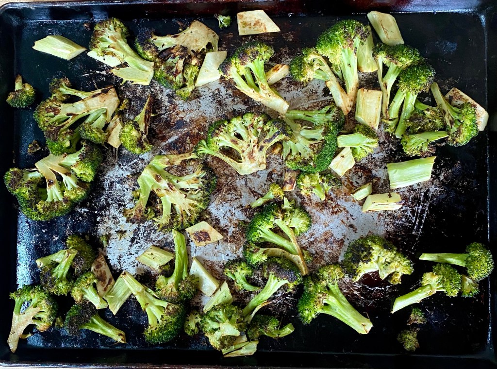 Another Note: I was able to comfortably fit two pounds of trimmed broccoli on a 3/4 sheet pan- if your pans are smaller cook in batches or use two pans on the lower and middle rack (swapping places after 8 minutes) to avoid steaming and to maximize your char.