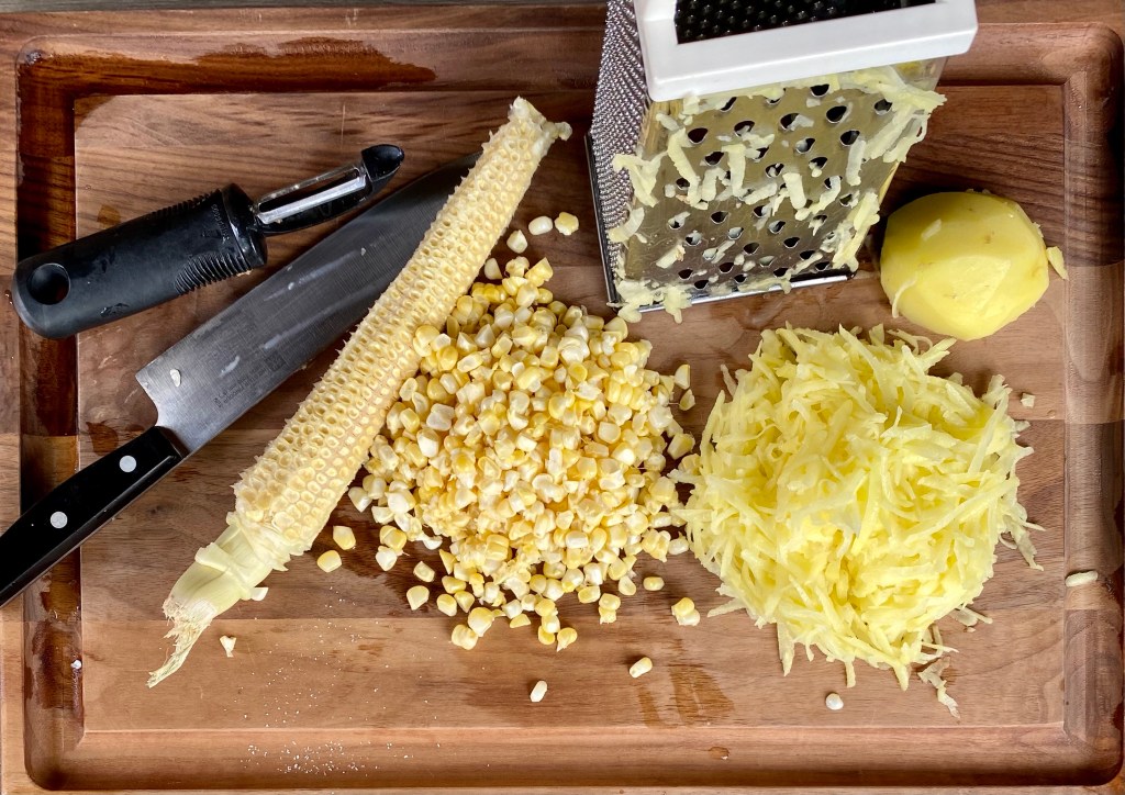 - 1 pound Yukon Gold potato, peeled and grated on large holes of a box grater