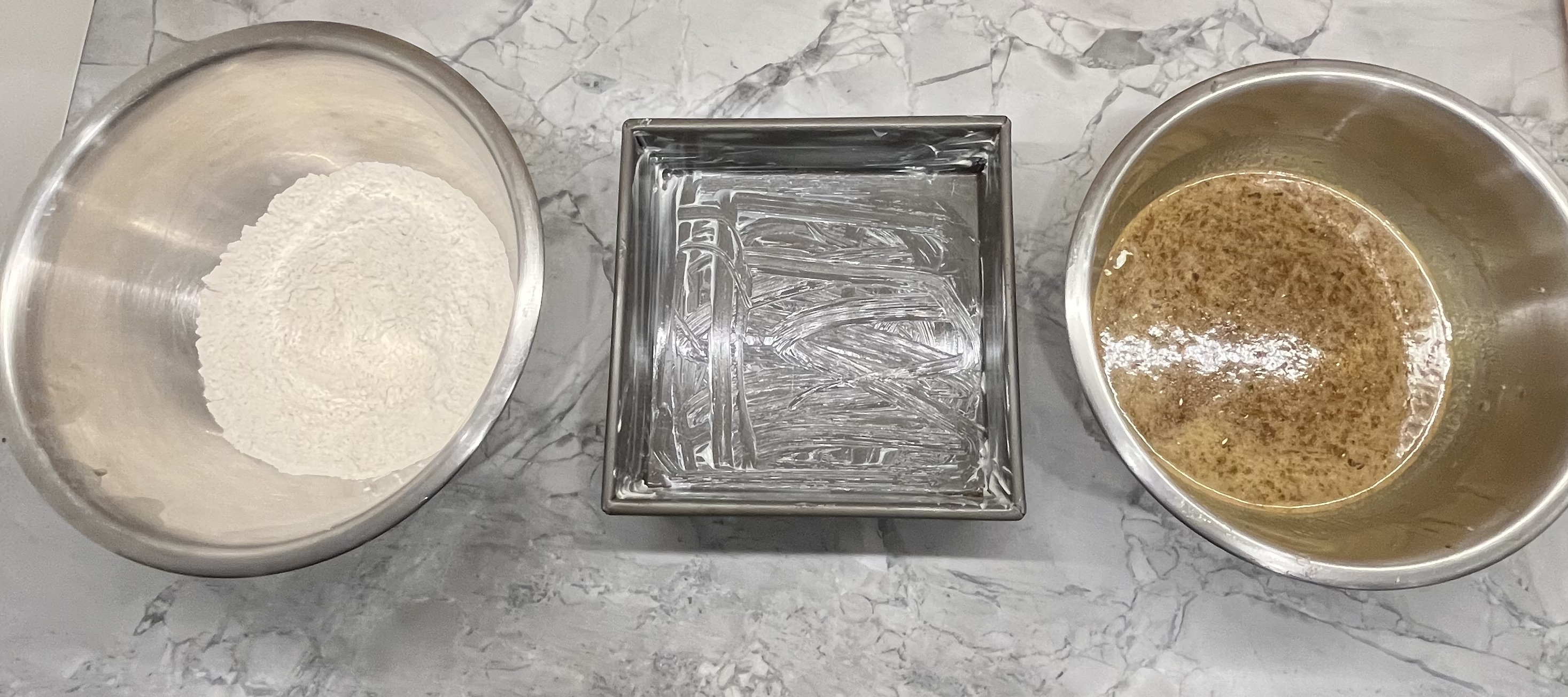 1. Dry Bowl- No Ginger, Go Figure? Set up middle oven rack and preheat to 350°. Lightly coat a 9 inch, square baking pan with butter and set aside. In a large bowl, mix together flour, baking soda, cinnamon and salt.
