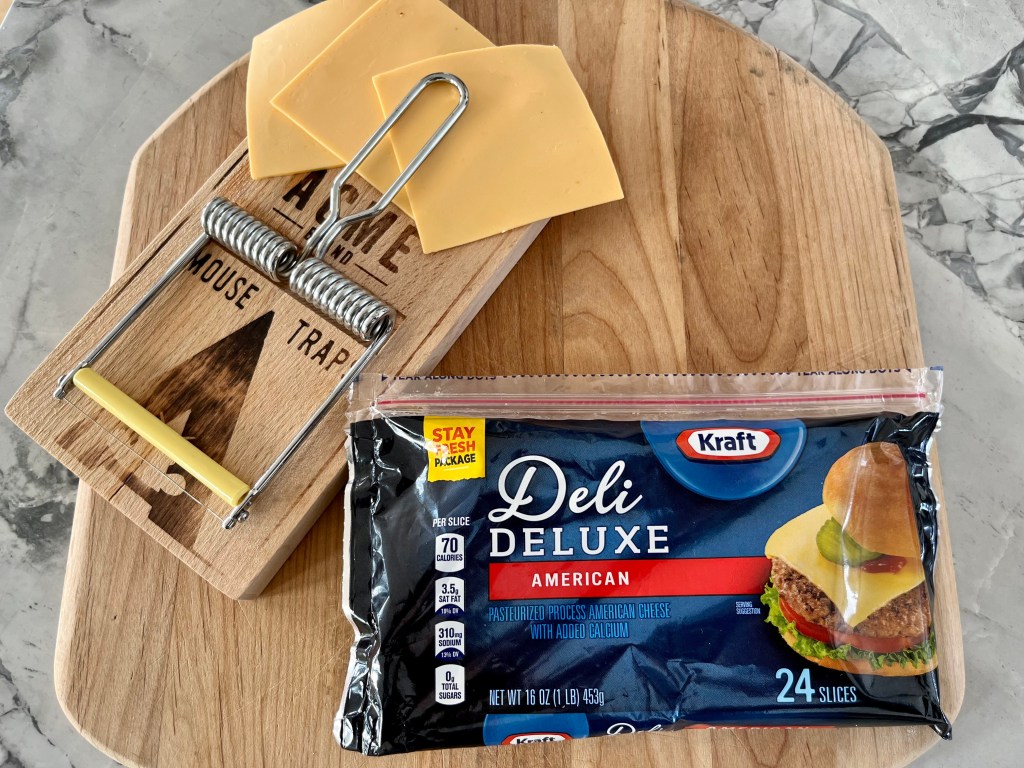 - 2.5 ounces (4 slices) Kraft Deli Deluxe American Cheese slices (“The champagne of processed cheese”)