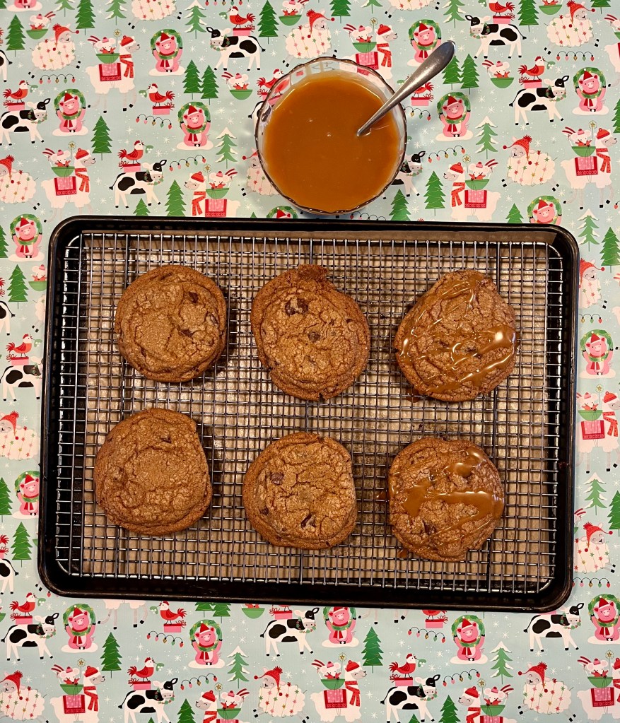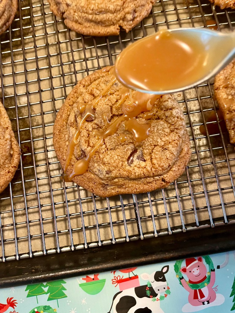 8. Drizzle Me This. Once cookies cool to room temp, place rack in baking sheet, with used parchment between rack and sheet for easy clean up, and drizzle cookies as you wish with salted caramel sauce.